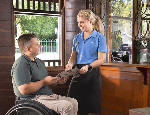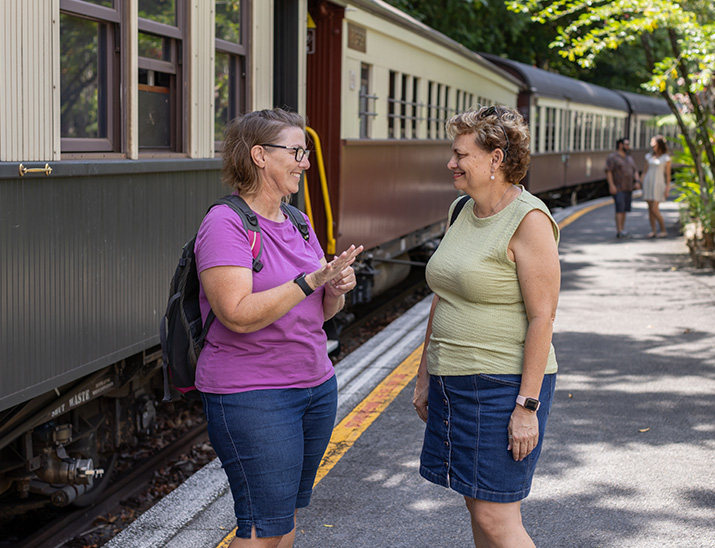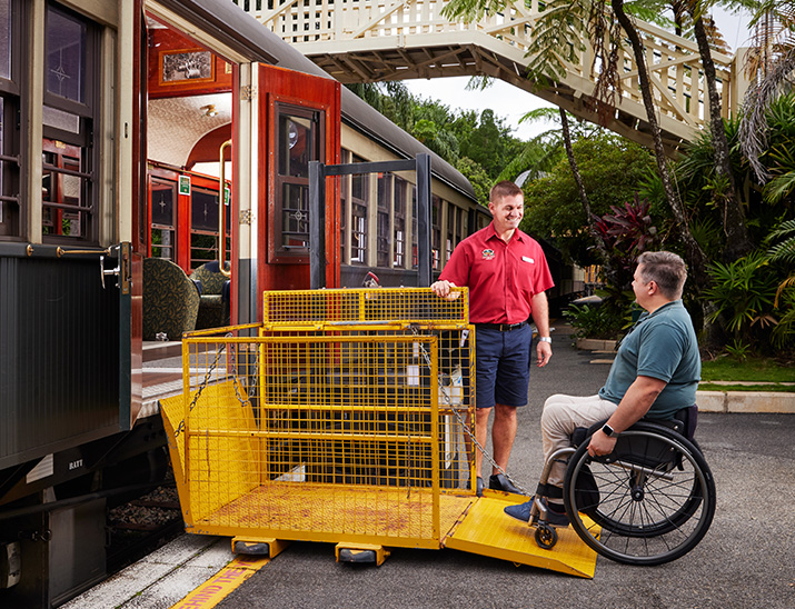 Page Content Connecting people with magical places and experiences is what we love doing, and we’ve been doing it for more than 130 years. We aim to give you all the information so you can decide if the Kuranda Scenic Railway journey is possible for you. We want you to be confident that when you book, you know it meets your accessibility requirements. We hope these resources and information will give you the clarity and confidence to make the journey your own. Everybody's journey is different View our campaign video General accessibility information Planning your journey Travelling with a carer Travelling with a guide, hearing or assistance animal Tour our train Take a virtual tour of our train Take an audio tour of our train At our railway stations Station information - Find your station (opens in new tab) Boarding the train Joining or leaving your service Assistance available On the train Accessible travel options Accessible seating and facilities Refreshments on board (Gold Class) Alternate information formatsInformation in alternate formats